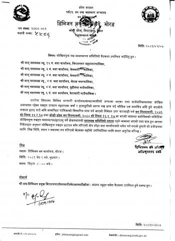 श्री वडाध्यक्ष ज्यू ४ नं. वडा कार्यालय, जोखिमयुक्त रुख व्यवस्थापन समितिको बैठकमा उपस्थिति सम्बन्धमा ।।